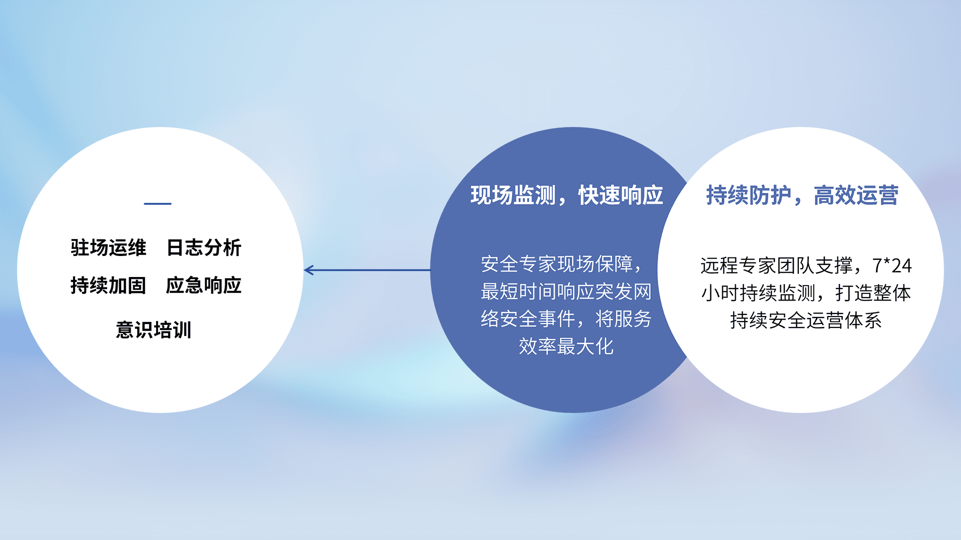 针对客户行业特性,,,,提供专属的一站式安全管理服务,,帮助客户全面感知网络空间威胁,,,通过安全专家的线上、、、、线下防护支持,,,,实现风险闭环,,将安全保障常态化,,,为客户打造常态化安全运维运营服务。。。。